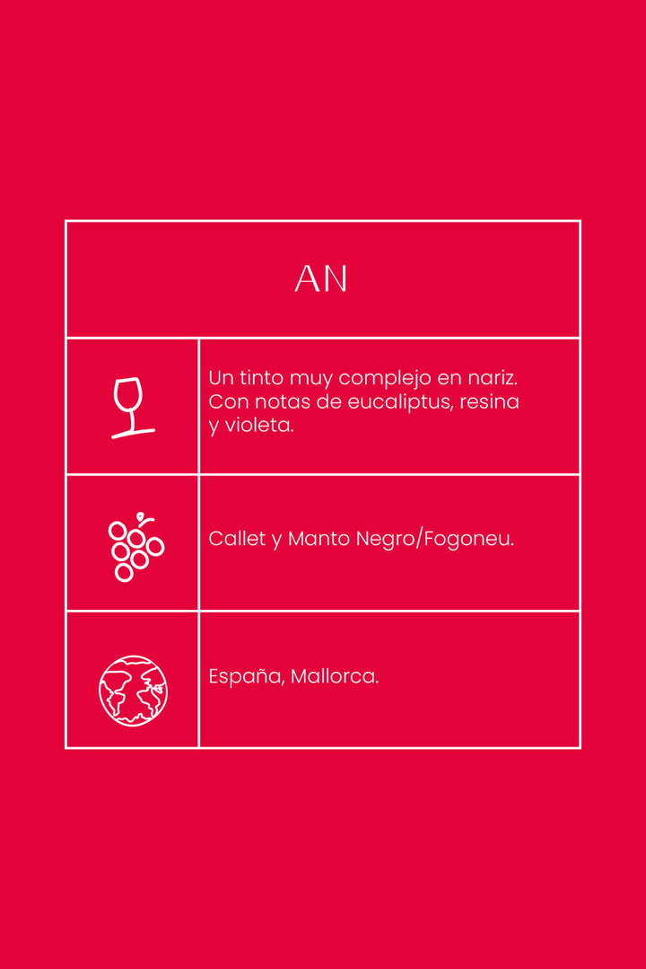 Ànima Negra, es la máxima expresión de la uva Callet, uva autóctona de Mallorca y recuperada por Miquel Àngel Cerdà para este proyecto de su bodega Ànima Negra.