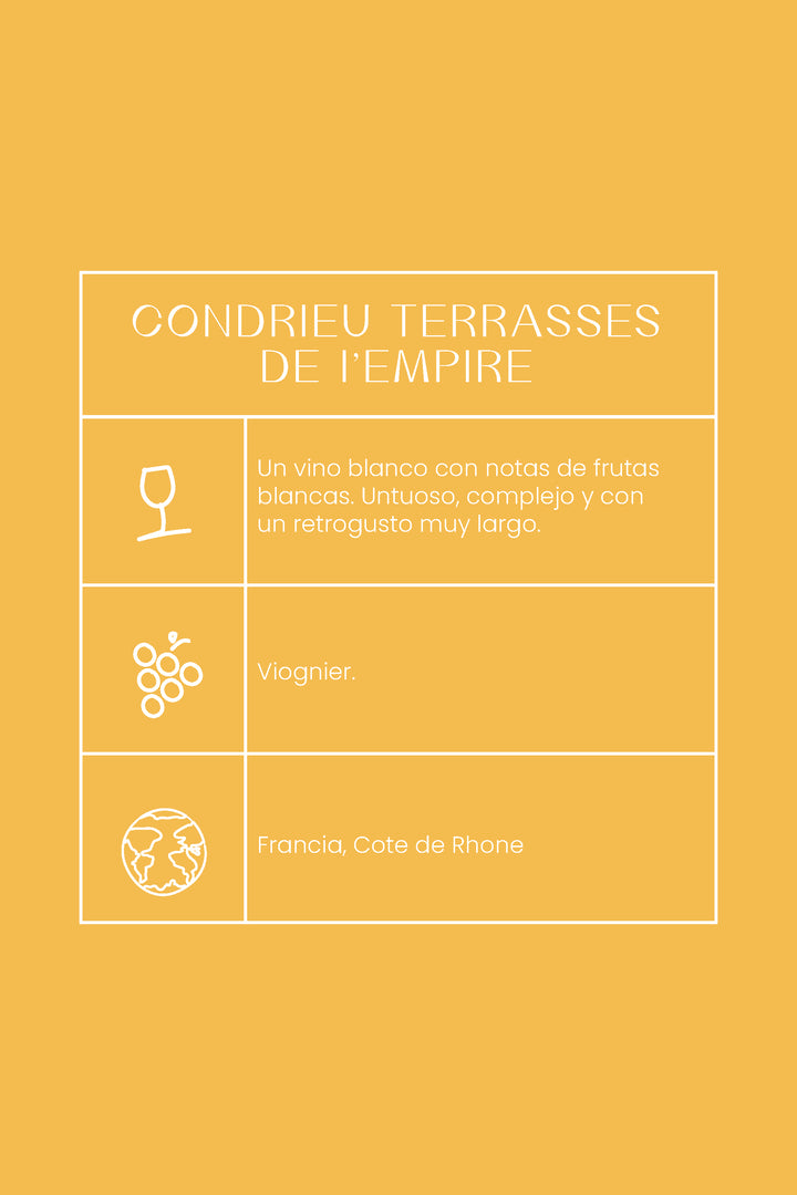 Un vino ideal para pescado a la brasa; verduras en tempura o a la parrilla. Quesos maduros. Pero también para pollo, pato o cordero.