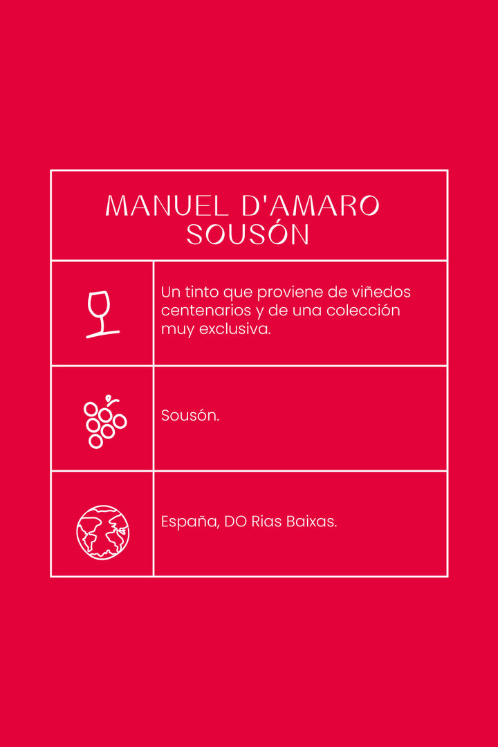 Vino de una colección muy exclusiva, dedicada a uno de los fundadores de la Bodega Señorio de Rubios en el año 2013. Sousón es una de las uvas autóctonas de la zona de Galicia.