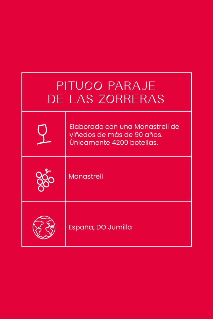 Este proyecto del enólogo Pepe Rodriguez de Vera, es un homenaje a la DO Jumilla, al sur este de España; elaborado con uva Monastrell, de viñedos de más de 90 años. Únicamente 4200 botellas.