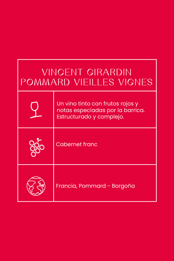 Vincent Girardin, en el año 1980, con tan solo 19 años, inicia su proyecto personal con 2 hectáreas de su família en Borgoña. Actualmente dispone 20 hectáreas en las zonas más importantes de la zona centro y norte de Borgoña, como Pommard y su Pinot Noir de viñedos viejos de más de 45 años.