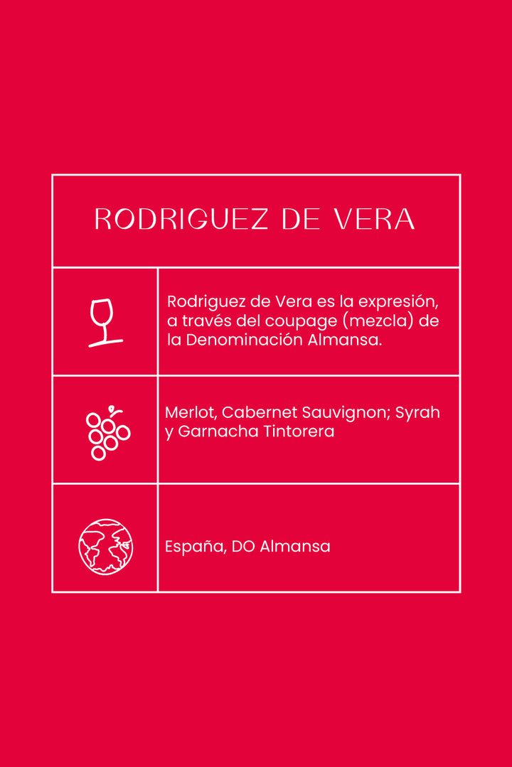 Rodriguez de Vera es la expresión, a través del coupage (mezcla) de la Denominación Almansa, donde el enólogo Pepe Rodríguez de Vera, elabora los vinos de la tradición familiar, desde 2010.