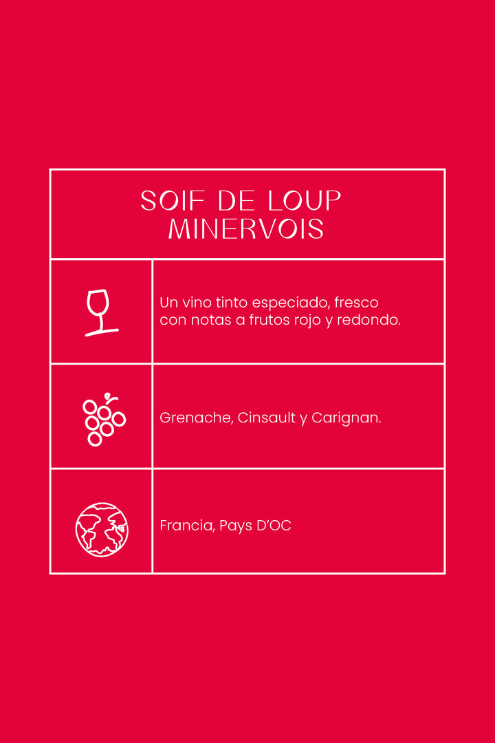 Soif de Loup en honor al lobo blanco que habita en esta zona del sur de Francia. Proyecto de recuperación del lobo en la zona; Viñedos de más de 30 años, orgánicos y con prácticas biodinámicas.