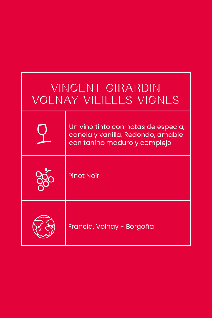 Vincent Girardin, en el año 1980, con tan solo 19 años, inicia su proyecto personal con 2 hectáreas de su família en Borgoña. Actualmente dispone 20 hectáreas en las zonas más importantes de la zona centro y norte de Borgoña, como Volnay con su Pinot Noir de viñedos viejos de más de 65 años.